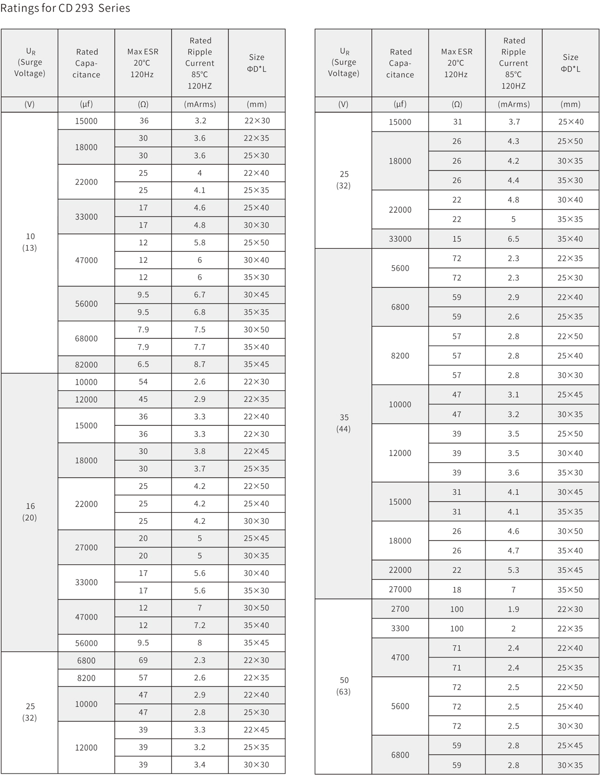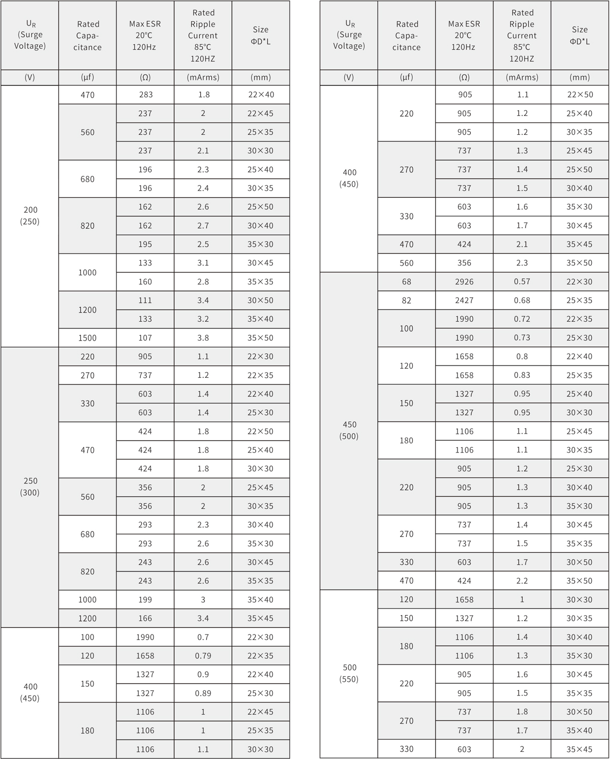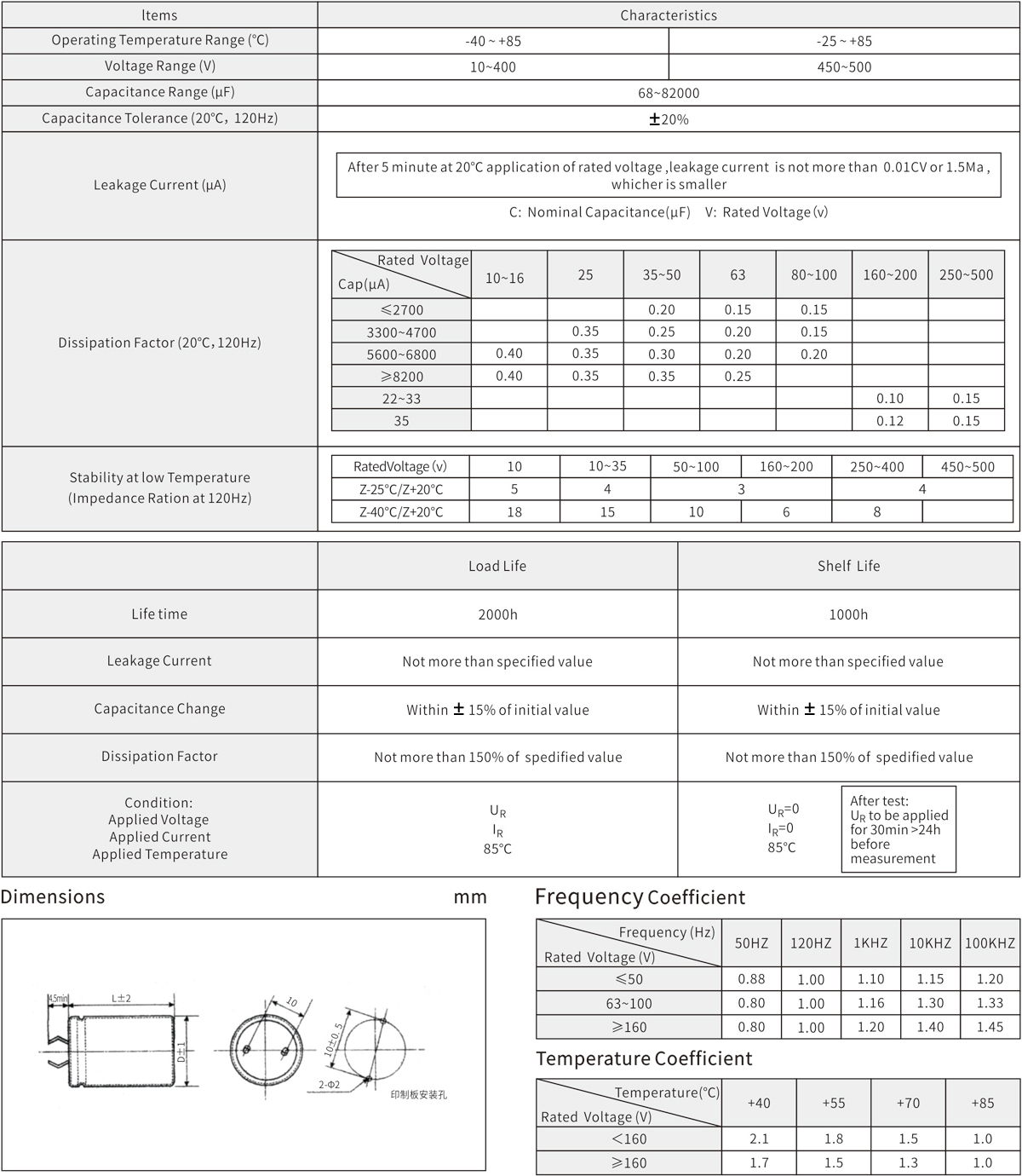 2000h at 85℃;Standard 85℃